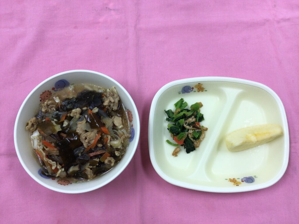 <給食> 磯うどん 小松菜と油揚げの和え物 りんご