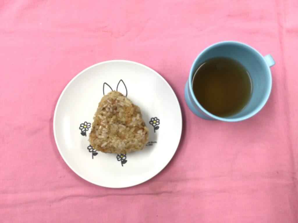 <おやつ> おかかおにぎり 麦茶