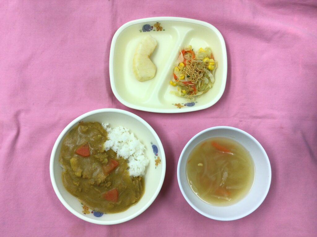 <給食> カレーライス コーンスープ パリパリサラダ りんご